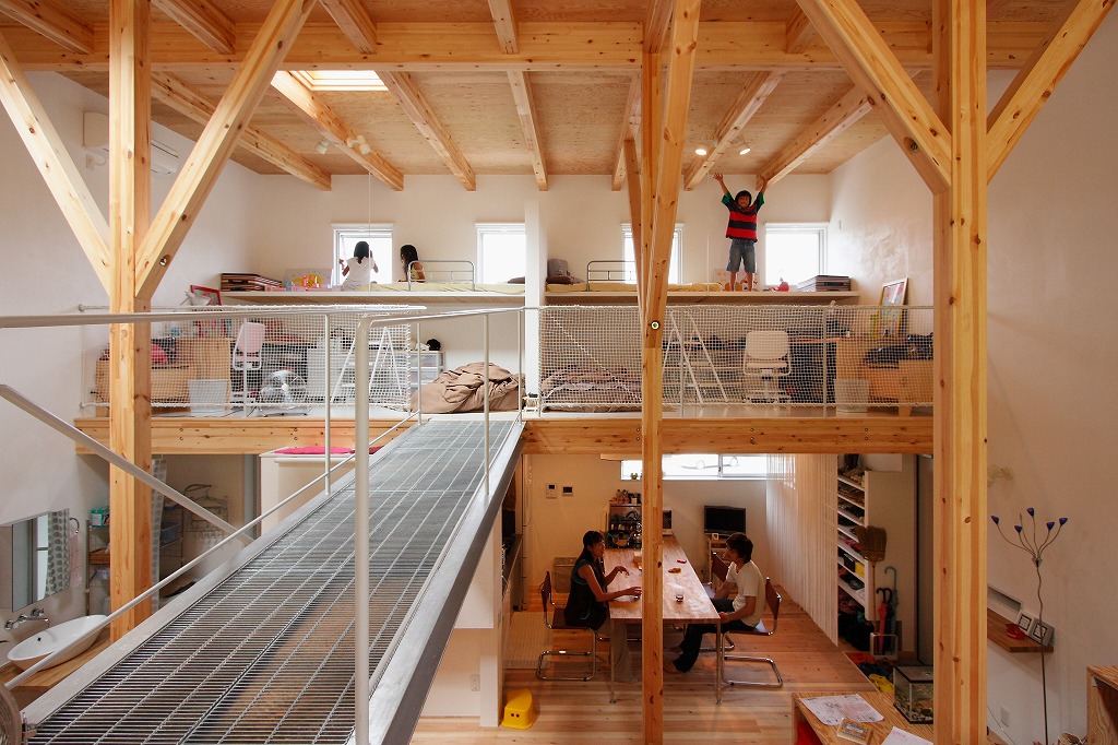 部屋の間仕切りは最小限にして、家族それぞれの居場所をつくっていく。